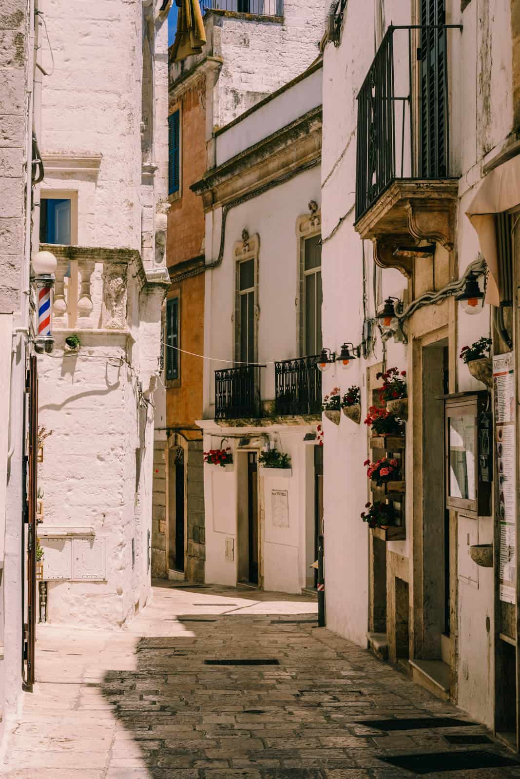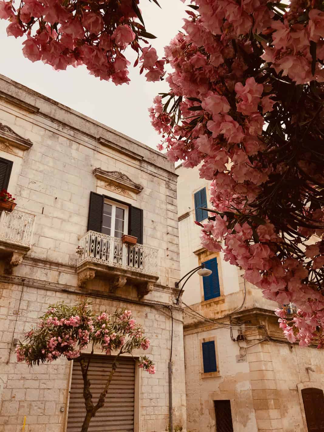 I tried not to let the periphery of motorways in the vicinity of the airport be the judge of my first impressions and waited patiently for the promised beauty of Puglia to reveal itself. Which it did, albeit with reservations. You will find whitewashed villages with a labyrinth of tiny alleyways and piazzas framed by pink geranium spilling over balconies, which lay deserted during siesta when only visitors braved the midday heat.