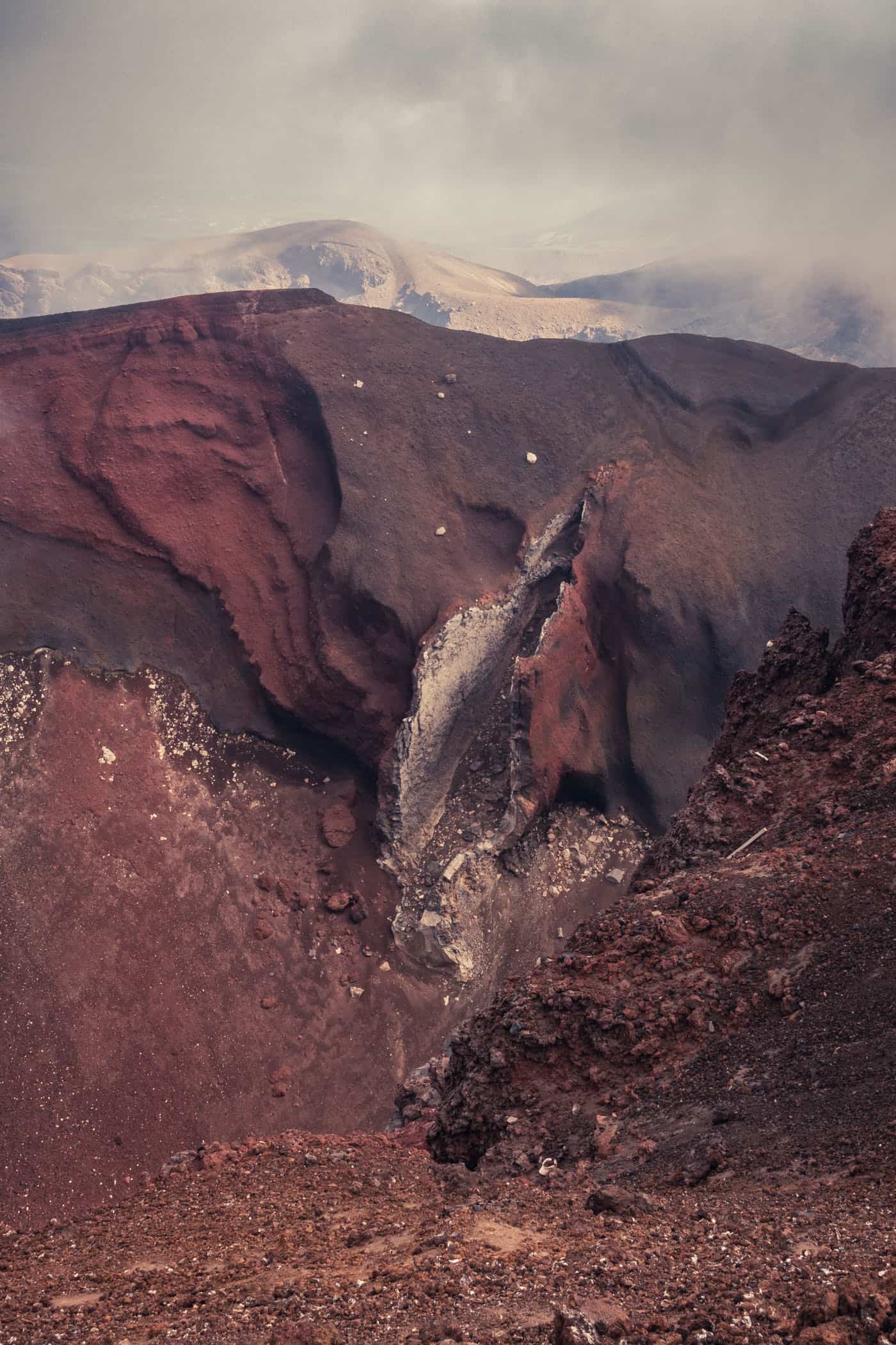 This is Tolkien’s land of Mordor. And just like in Lord of the Rings, the menacing clouds fit this inhospitable, other-worldly place so well. A landscape so dark and barren and yet bathed in a bountiful palette of crimson reds, vivid orange hues, and dark browns.
